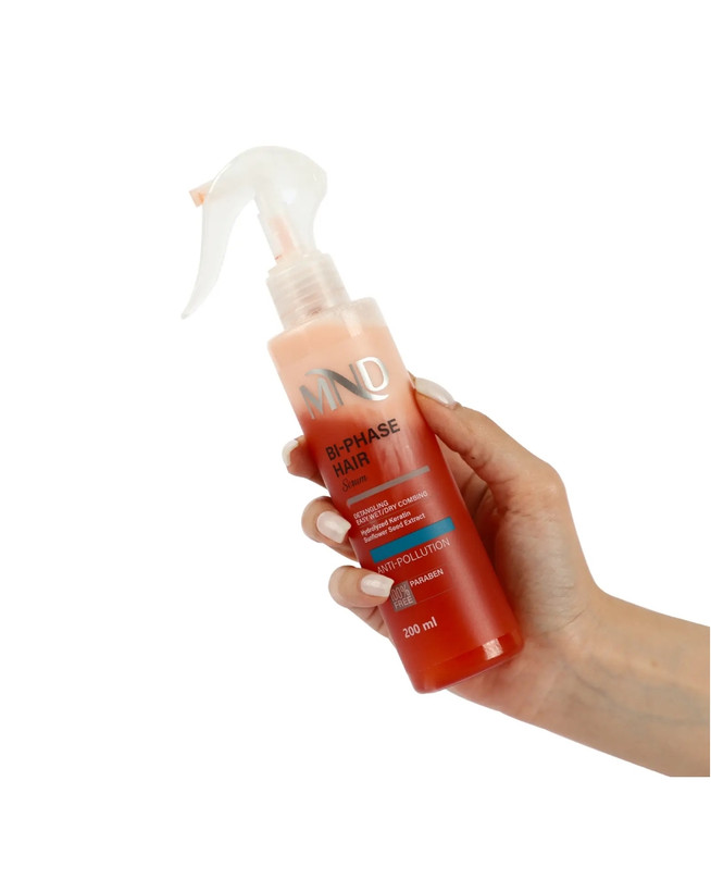 ابتدا سرم مو دو فاز را به خوبی تکان دهید تا هر دو فاز کاملا با هم ترکیب شوند و سپس براساس حجم موها، مقدار مورد نیاز از محصول را روی ساقه موها اسپری کنید. سپس موها را شانه کرده و حالت دهید. (بدون نیاز به آبکشی)