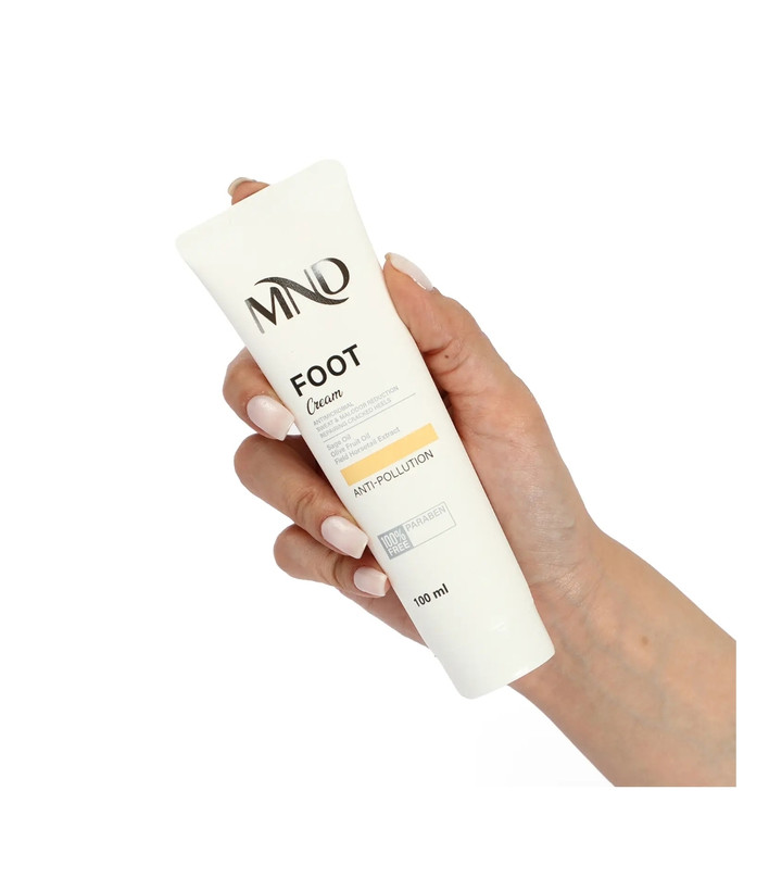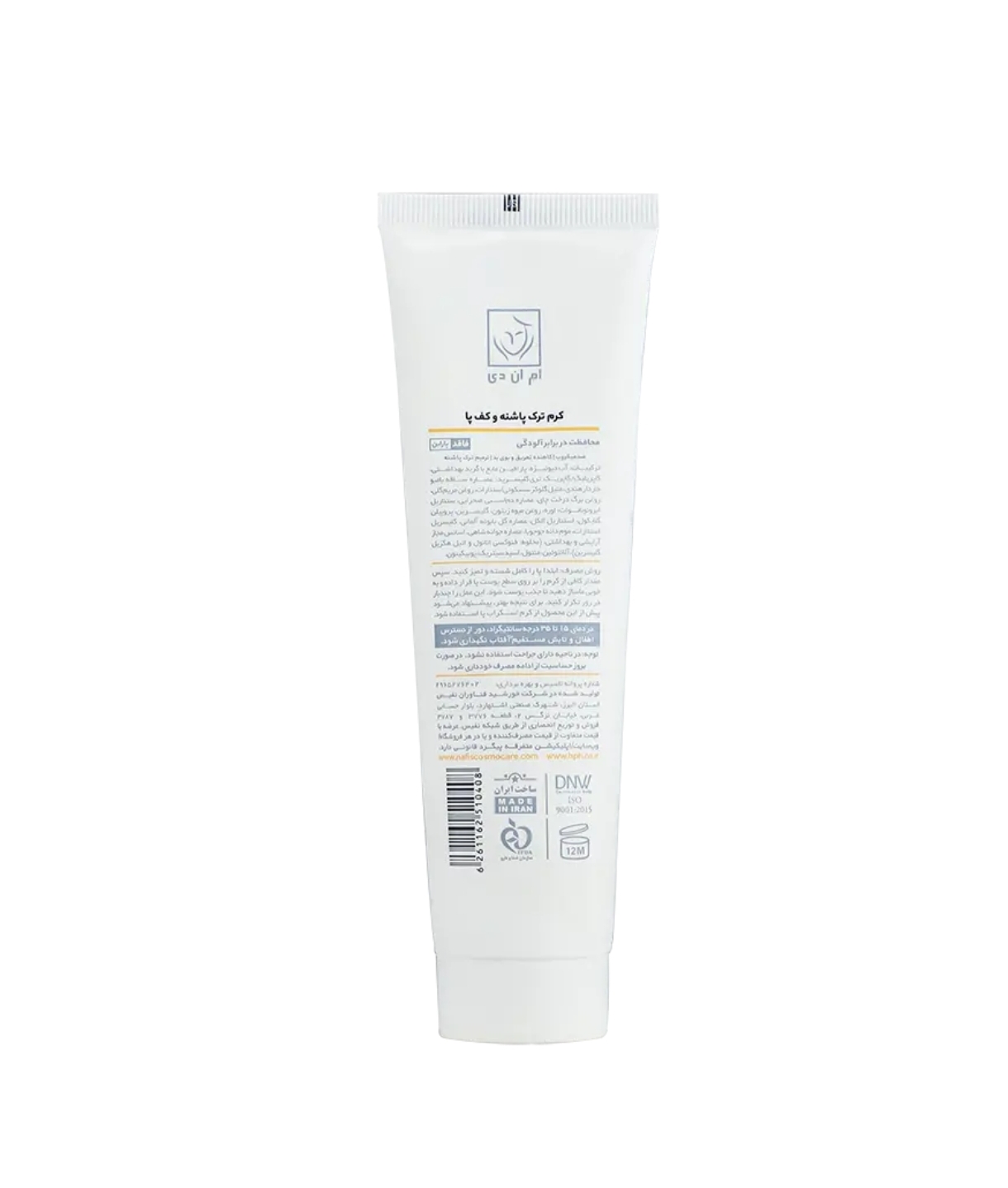کرم ترک پاشنه و کف پا ام ان دی با بهره گیری از روغنها و ترکیبات گیاهی، ضد میکروب، کاهنده تعریق و بوی بد پا و ترمیم ترک پاشنه پا بوده و خاصیت محافظت در برابر آلودگی داشته تا از پوست پا به خوبی محافظت کند.