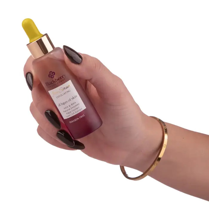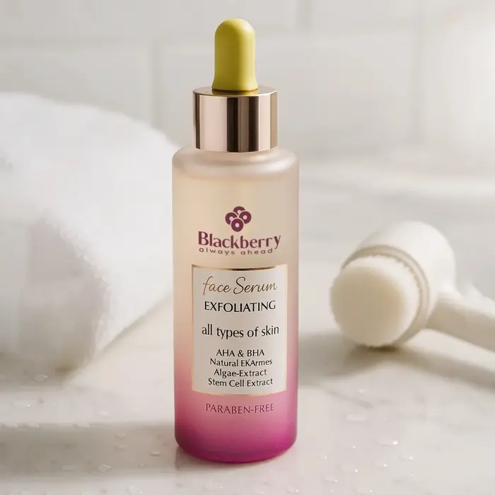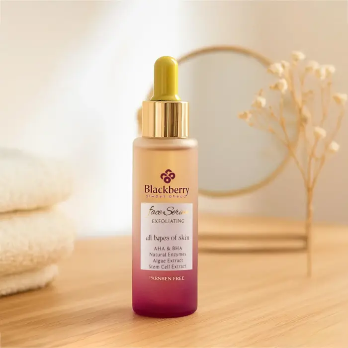 سرم لایهبردار صورت بلک بری با ترکیبی از مواد لایهبردار متنوع، شامل آنزیمهای طبیعی، آلفا هیدروکسی اسید (AHA) و بتا هیدروکسی اسید (BHA) بهطور ملایم و موثر سلولهای مرده را حذف کرده و با کمک به بازسازی پوست، نرمی، شفافیت و طراوت را به آن بازمیگرداند. این فرمول متعادل، با بهرهگیری از ترکیبات کاهش دهنده التهاب و بازسازیکننده، برای انواع پوست مناسب است و در مدت کوتاهی جلوهای صاف، درخشان و یکدست به پوست میبخشد.