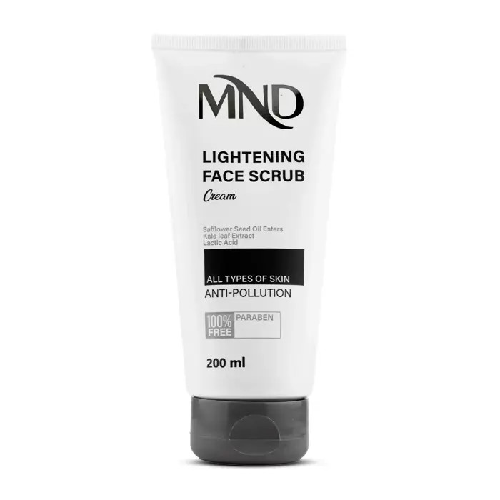برای اسکراب صورت، انتخاب ذرات با دانهبندی مناسب ضروری است تا لایهبرداری بهطور موثر و بدون آزار پوست انجام شود. این محصول علاوه بر ذرات اسکراب، حاوی اسید لاکتیک هم هست که در کنار ذرات فیزیکی، لایهبرداری ملایم و مؤثری را تضمین میکند. همچنین، کرم اسکراب روشنکننده MND دارای عصاره برگ کاله هم هست که فرایند لایهریزی طبیعی پوست را تسریع کرده و مکمل ترکیبات فوقالذکر عمل میکند. ناگفته نماند که این عصاره دو ویژگی مهم دیگر، یعنی افزایش انرژی سلولی و ترمیمکنندگی لایه اپیدرم، را هم دارد که برای تشکیل لایههای جدید پوست در سطح صورت، پس از اسکراب ضروری بوده و برای ایجاد پوستی یکدست و صاف لازم هستند. استرهای پایپرونیل روغن دانه گلرنگ موجود در این محصول، با کنترل مسیر تولید ملانین، باعث کاهش تولید آن شده و در نتیجه آن، روشنتر شدن پوست رخ میدهد. این عصاره همچنین خواص قابل توجه و متمایزی در کاهش التهاب و استرس پوست دارد و باعث آرامش پوست پس از استفاده از اسکراب میشود. البته روغن هسته انگور، روغن دانه سویا و عصاره پوست درخت مگنولیای سفید هم وظیفه کنترل قرمزی پوست بعد از اسکراب را بر عهده دارند و باعث التیام پوست میشوند و با پوشاندن سطح پوست با ترکیبات روغندوست سد دفاعی پوست را تقویت میکنند. به این دلیل که عوامل پیرامونی میتوانند از ناقص بودن لایه اپیدرم سوء استفاده کرده و وارد پوست شوند، لازم است تا از عصاره گل جاوید ایتالیایی و عصاره گل مینای چمنی هم برای ارتقا قابلیت دفاعی پوست دربرابر آلودگی پیرامون انسان، کمک گرفته شده است.