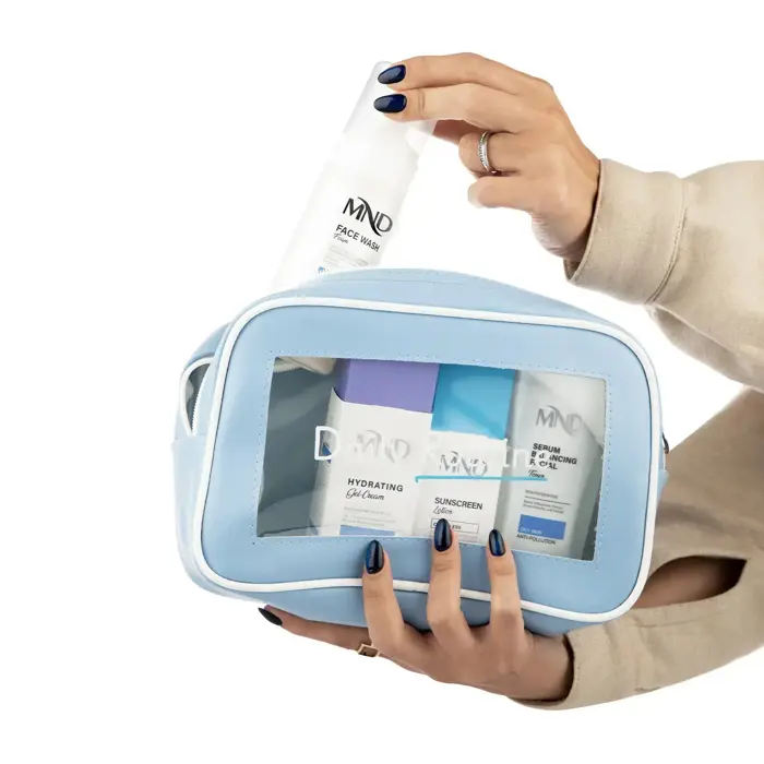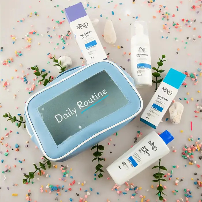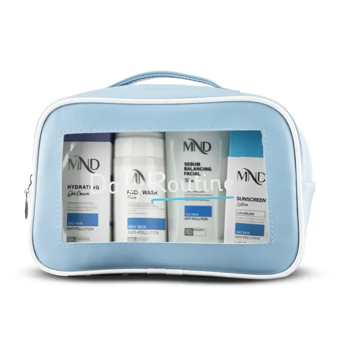 پک روتین روزانه مراقبت پوستیاین پک مراقبت روزانه MND مناسب پوستهای چرب بوده و شامل فوم شستشو، تونر متعادل کننده چربی، ژل-کرم آبرسان و لوسیون ضدآفتاب است